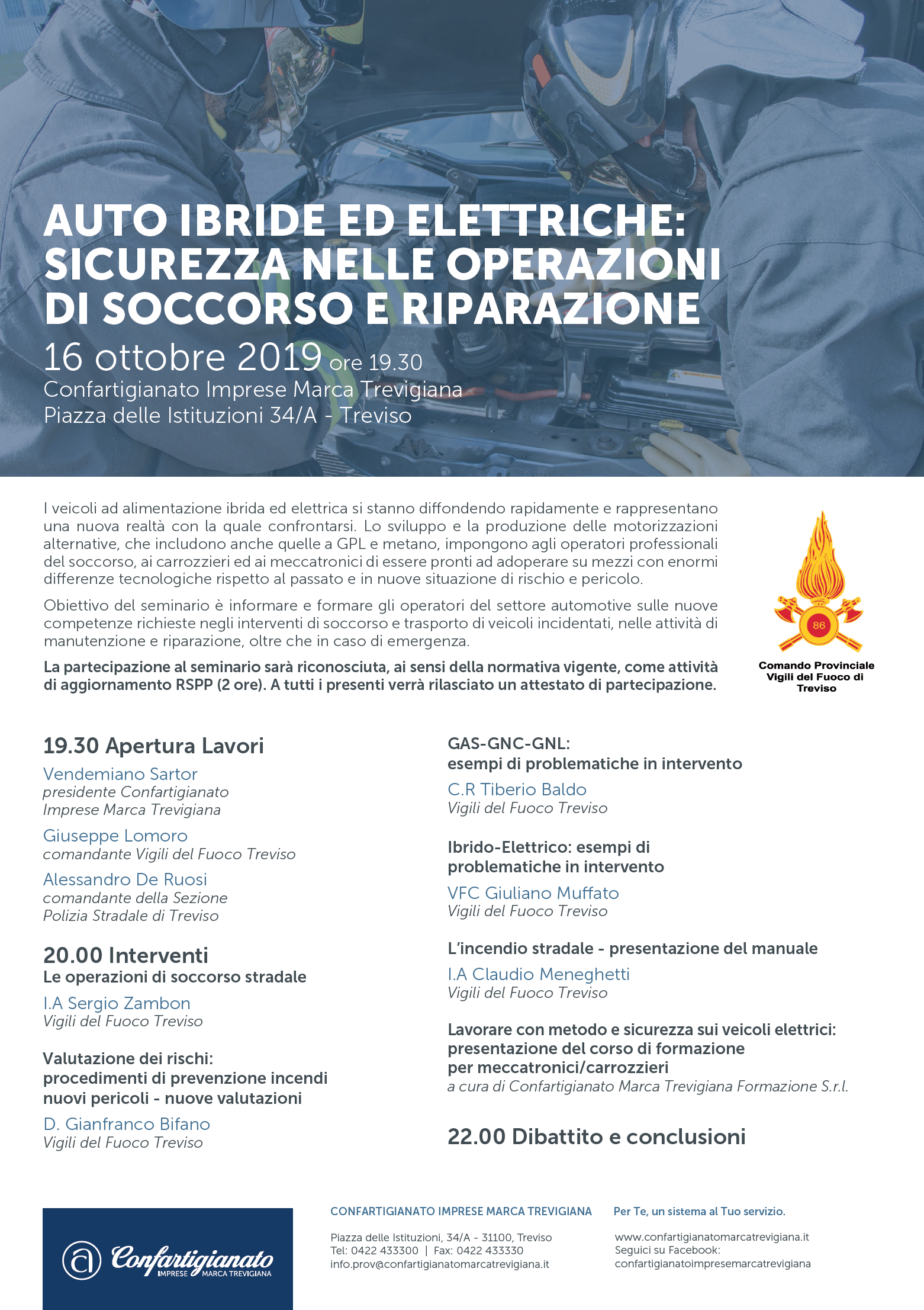 AUTO IBRIDE ED ELETTRICHE. SICUREZZA NELLE OPERAZIONI DI SOCCORSO E MANUTENZIONE - SEMINARIOlunedì 7 ottobre 2019 10.57L'evento è organizzato dalla categoria Automotive di Confartigianato IMT in collaborazione con i Vigili del Fuoco di Treviso.