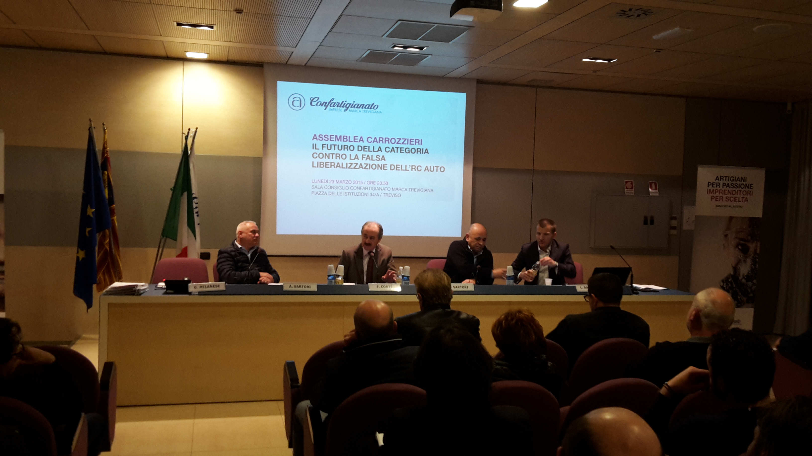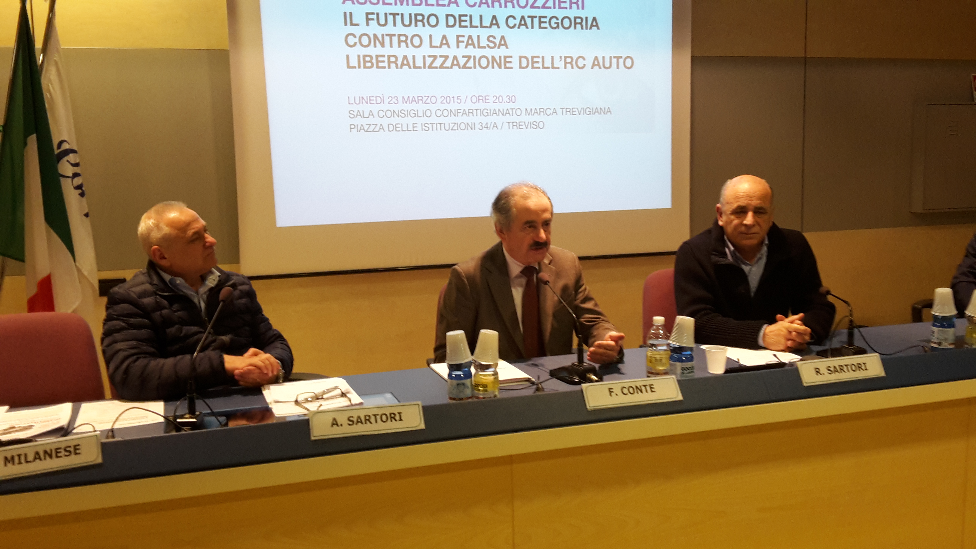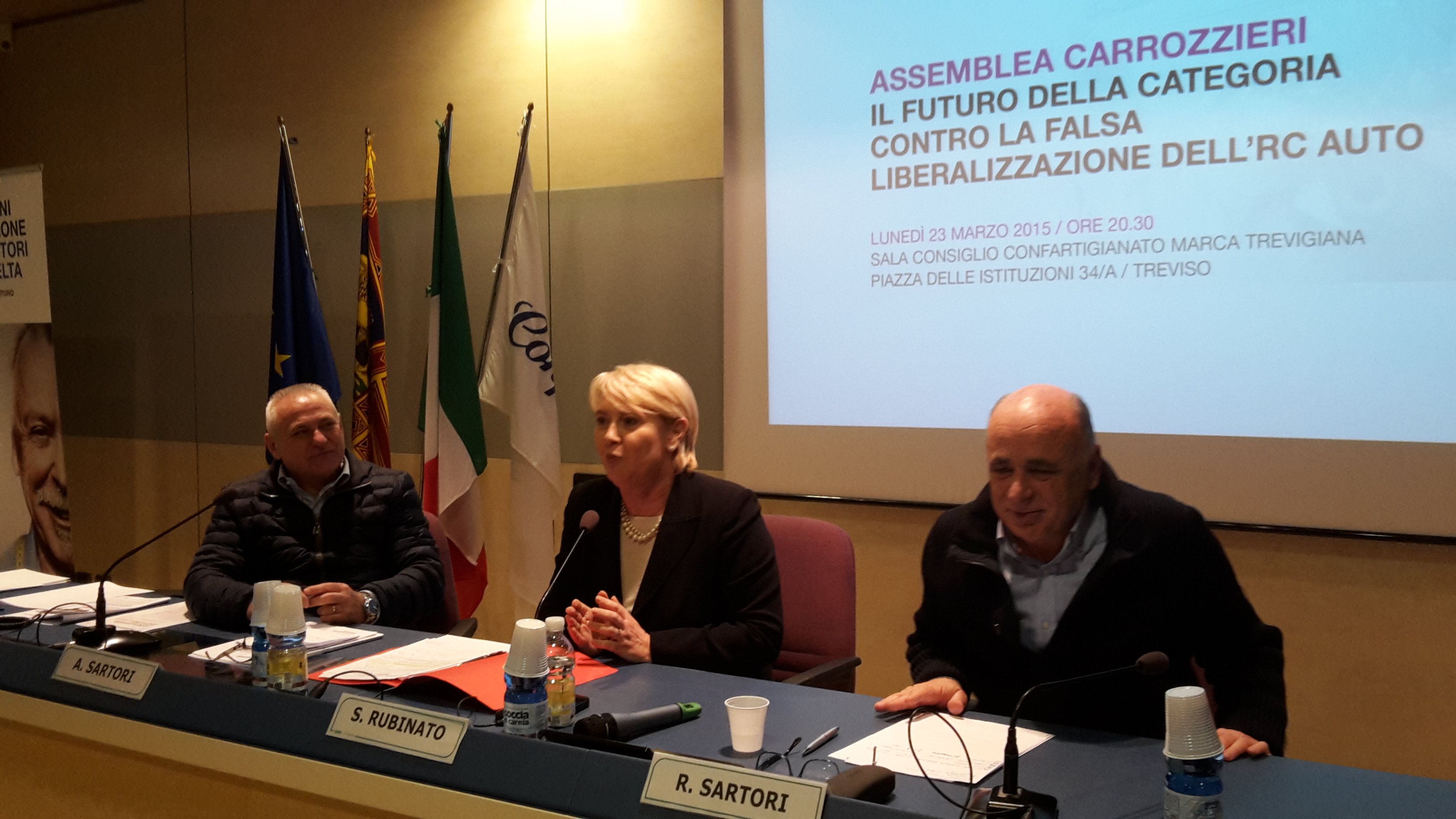 ASSEMBLEA PROVINCIALE CARROZZIERI. I RINGRAZIAMENTI DEL PRESIDENTE ARMANDO SARTORI martedì 24 marzo 2015 12.57Viva soddisfazione lunedì sera per la bella riuscita dell'assemblea "IL FUTURO DELLA CATEGORIA CONTRO LA FALSA LIBERALIZZAZIONE DELL'RC AUTO".
